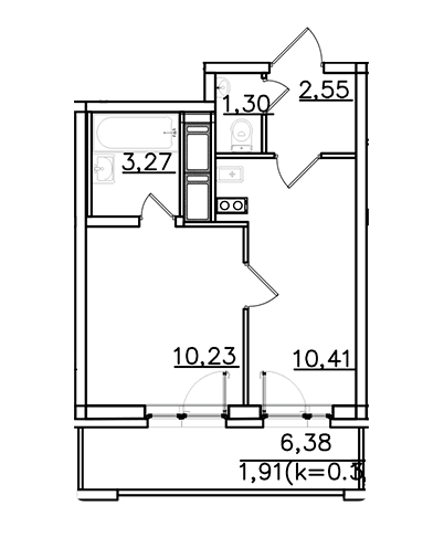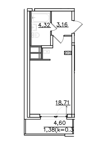Площадь от 29.5 м2