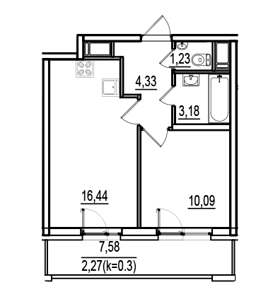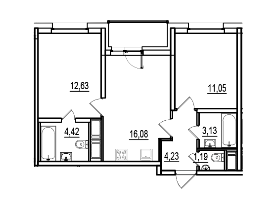 Начиная от 1-комнатных квартир, есть планировки, в которых вход в приватную зону ванной комнаты предусмотрен из спальни.