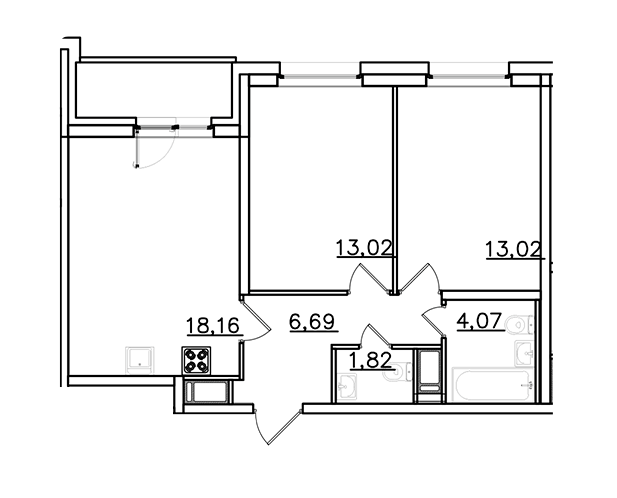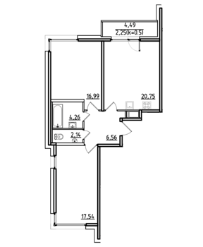 Площадь от 54.4 м2
