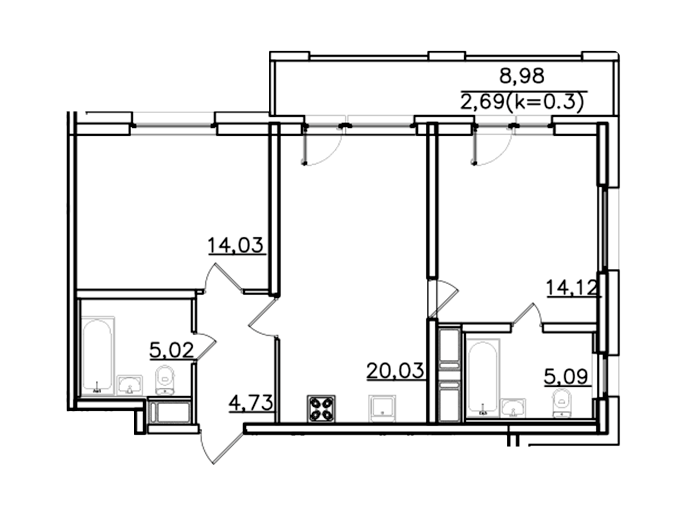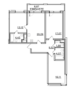 Площадь от 89.3 м2