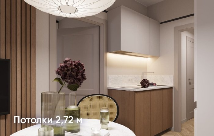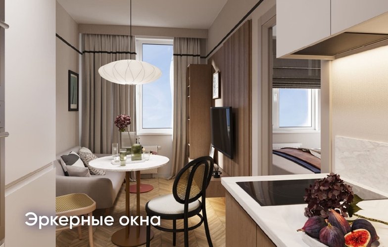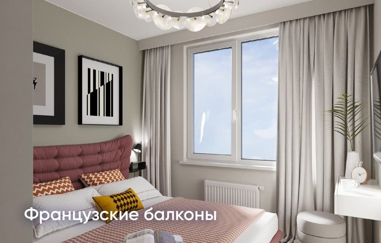 Стандартная высота потолка вкупе с увеличенными до 1,85 м окнами дает больше света и ощущения пространства
