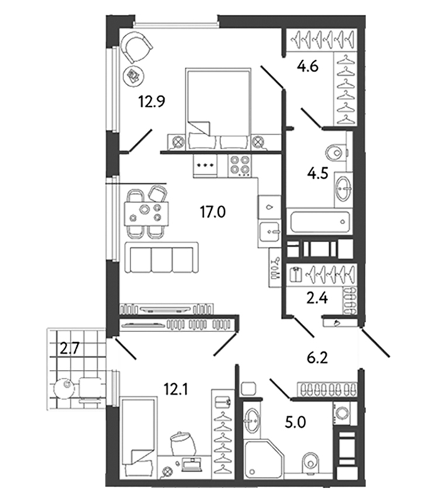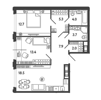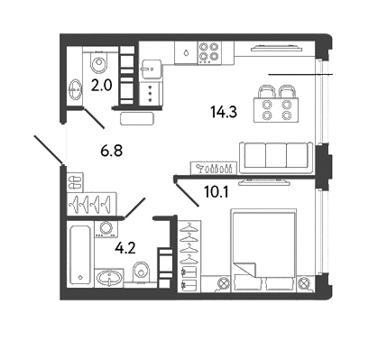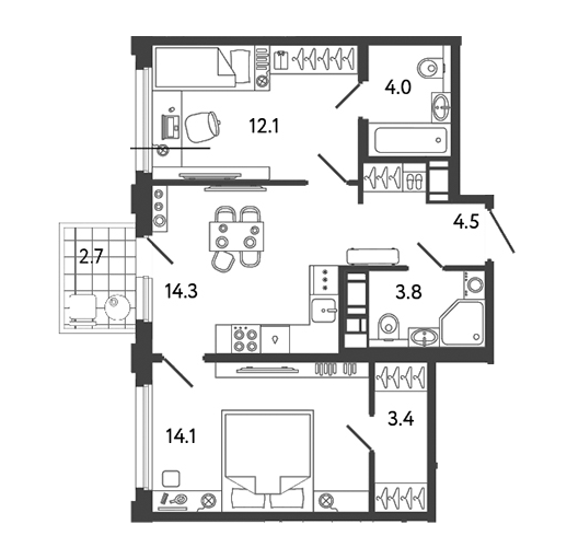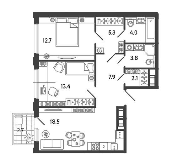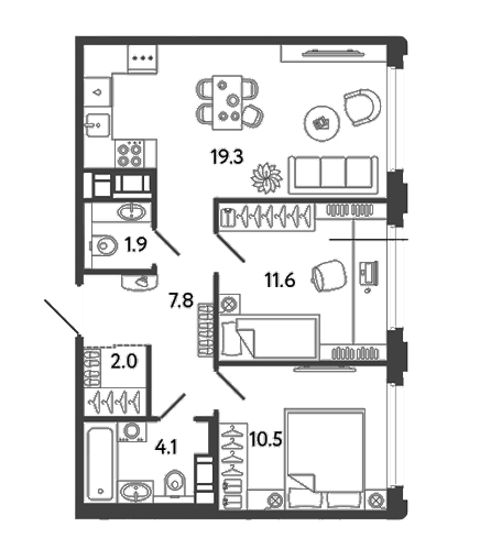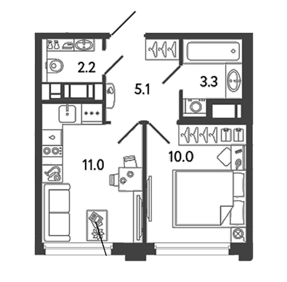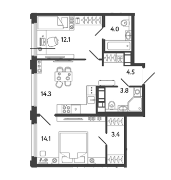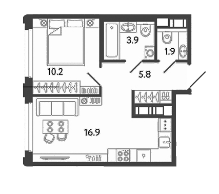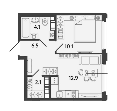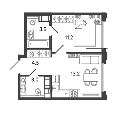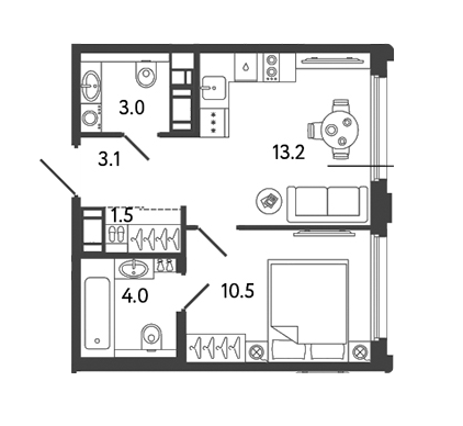 Площадь от 38.5 м2