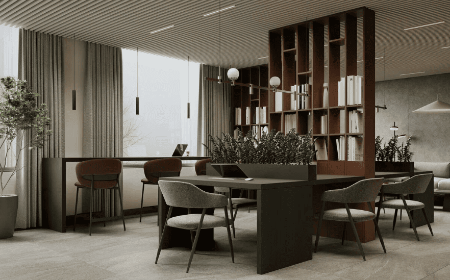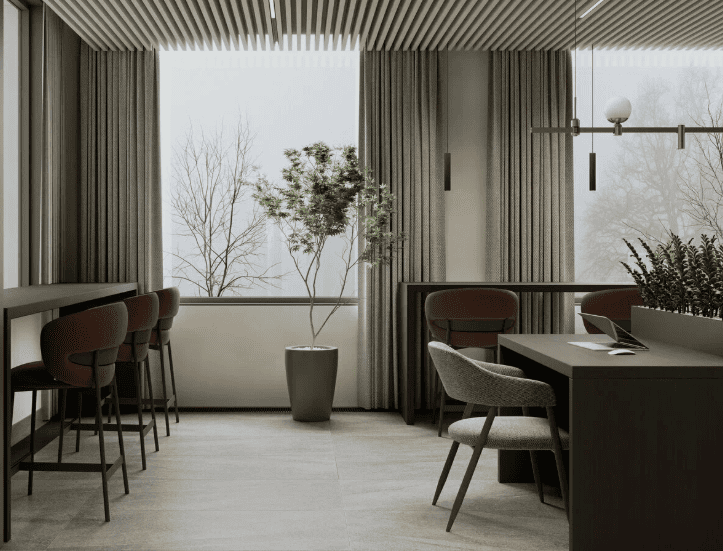 Здесь создали не просто благоустройство, а визуальный ритм, который ведёт, фокусирует и вдохновляет. Тихий двор для концентрации – тёмные, фактурные растения задают медитативное настроение, которое настраивает на глубокое мышление и внутреннюю тишину. Активный двор для идей – всплеск цвета и света. Яркие цветущие композиции пробуждают энергию, стимулируют продуктивность и словно подталкивают к новым открытиям.