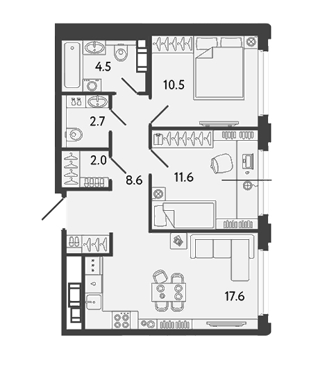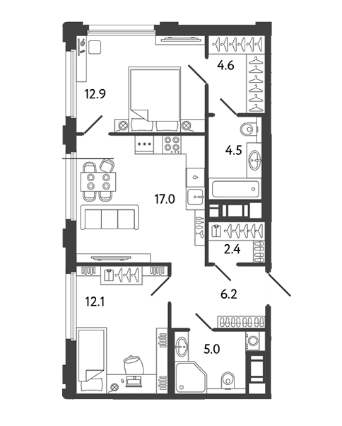 Площадь от 57.2 м2