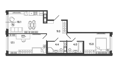 Площадь от 74.4 м2