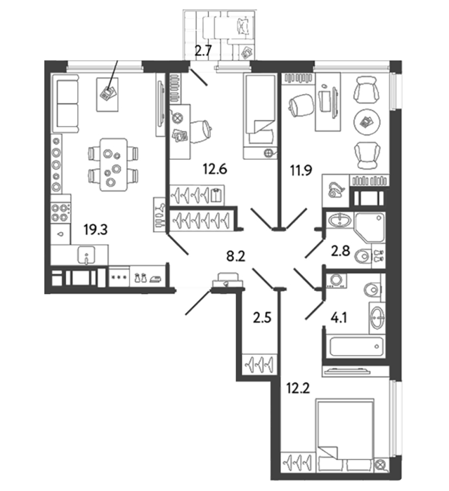 Площадь от 73.7 м2