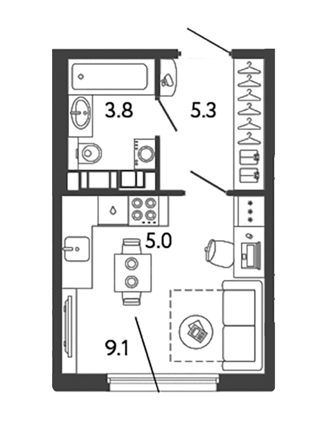 Площадь от 22.9 м2