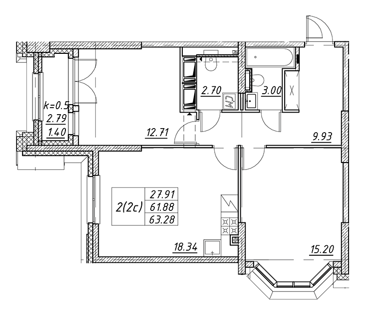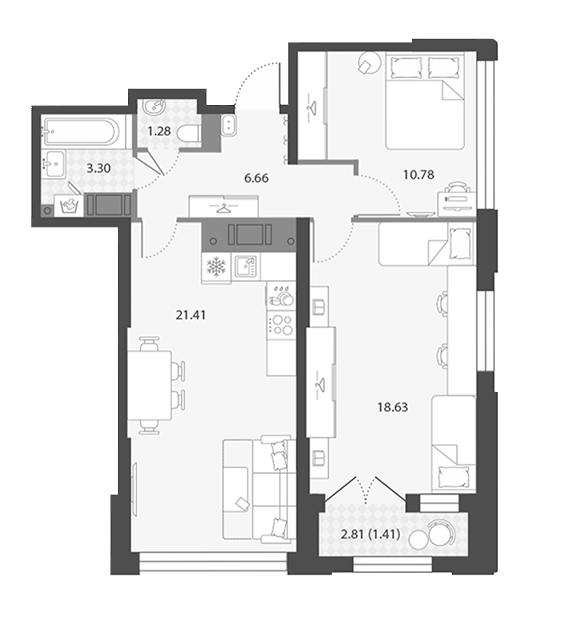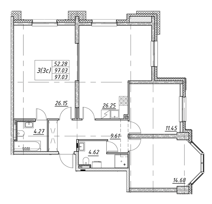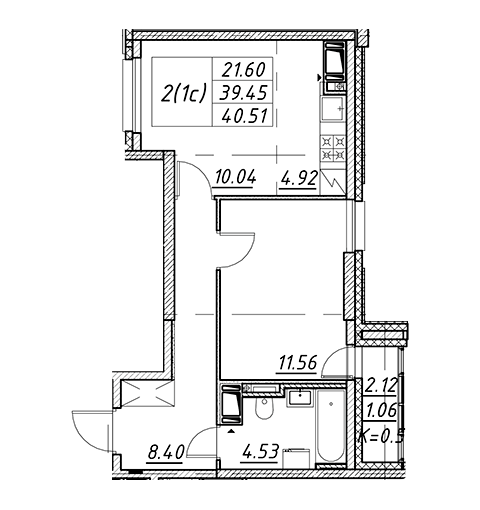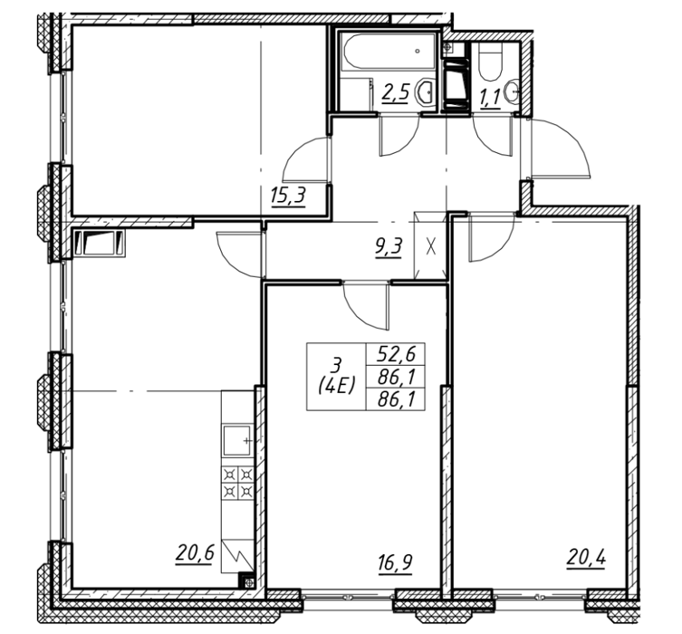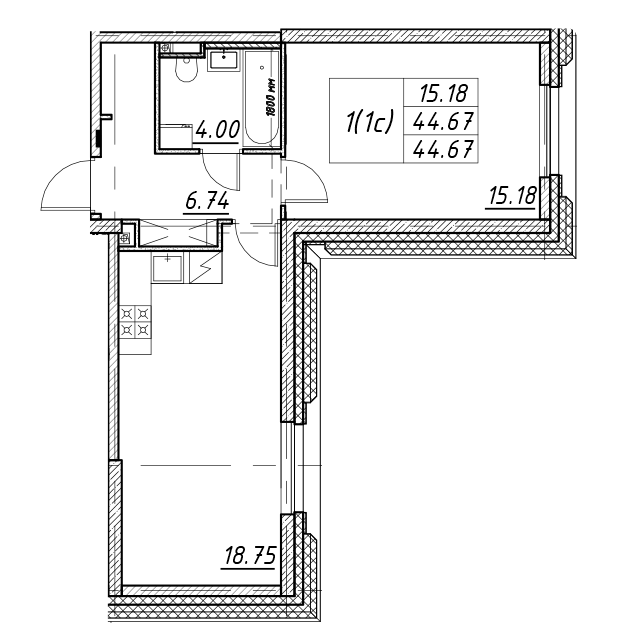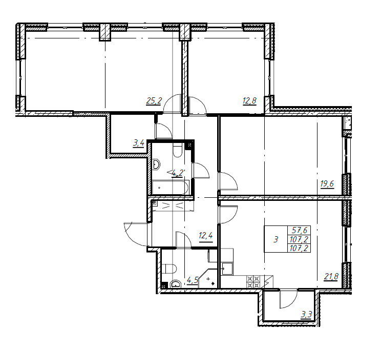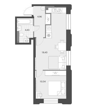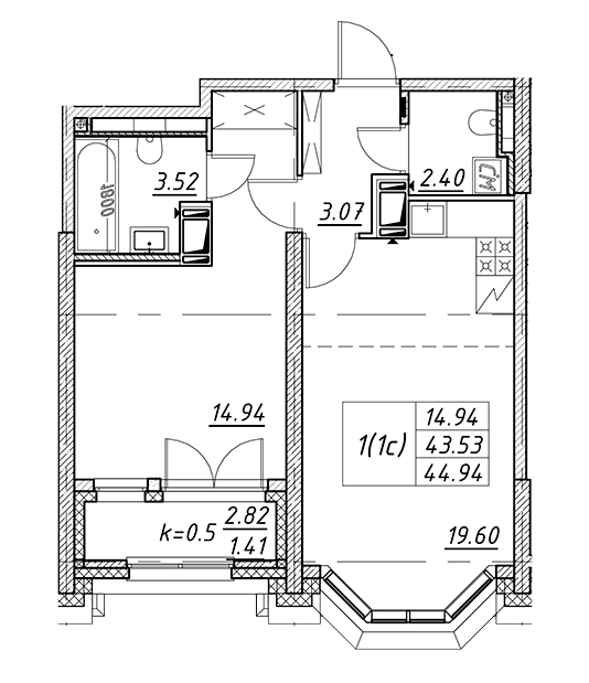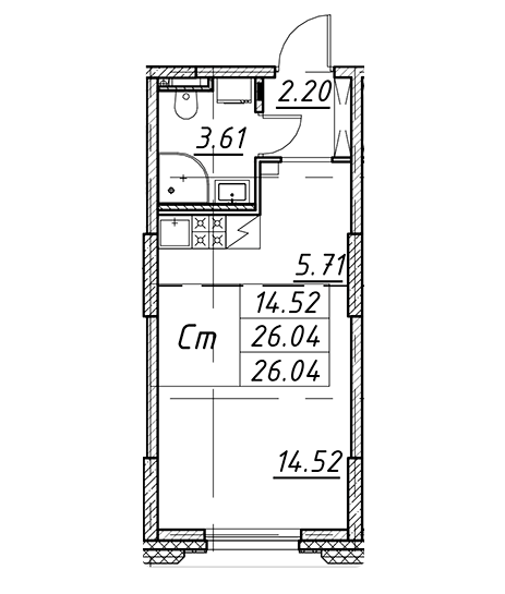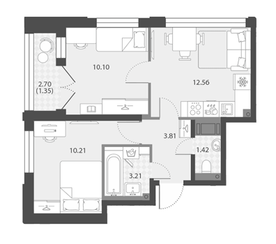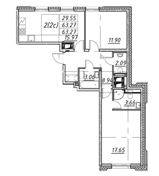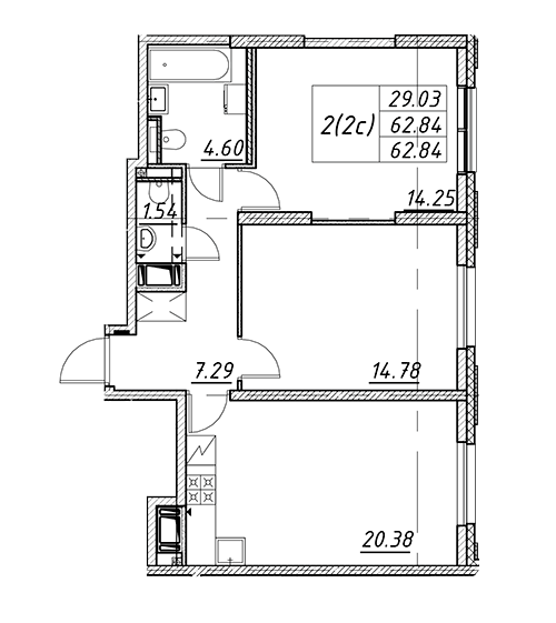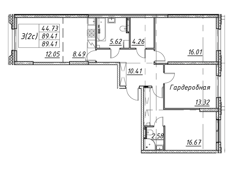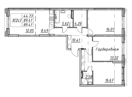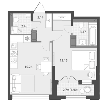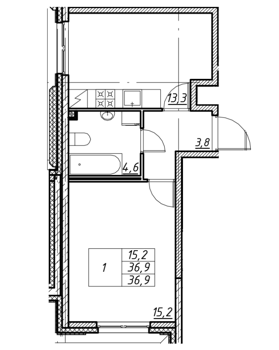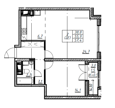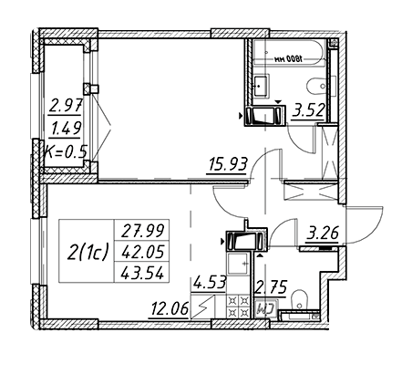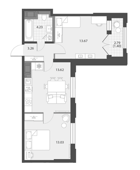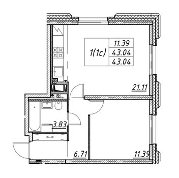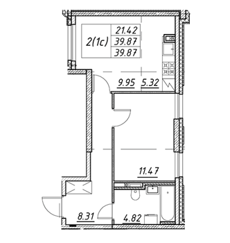 Площадь от 42.6 м2