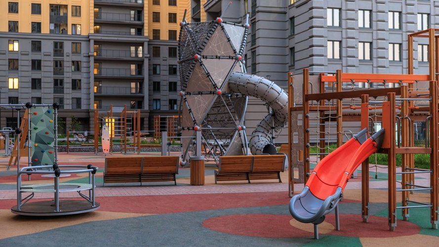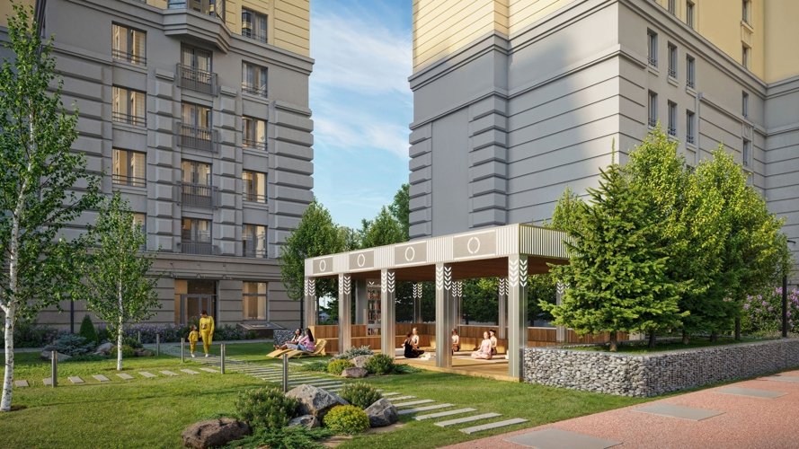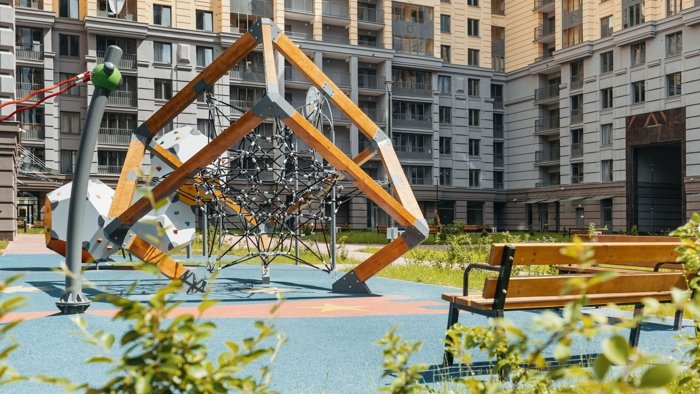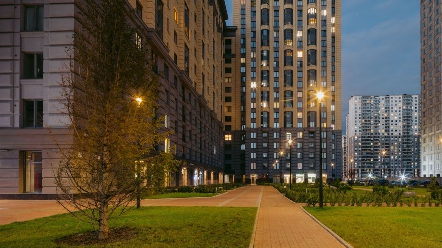 Закрытые для машин и посторонних дворы учитывают интересы каждого жителя. Клубные пространства, игровые площадки и спортивные зоны ориентированы на увлекательный отдых детей и взрослых любого возраста. Прогулочный бульвар и ландшафтное озеленение – на неторопливые прогулки и релакс.