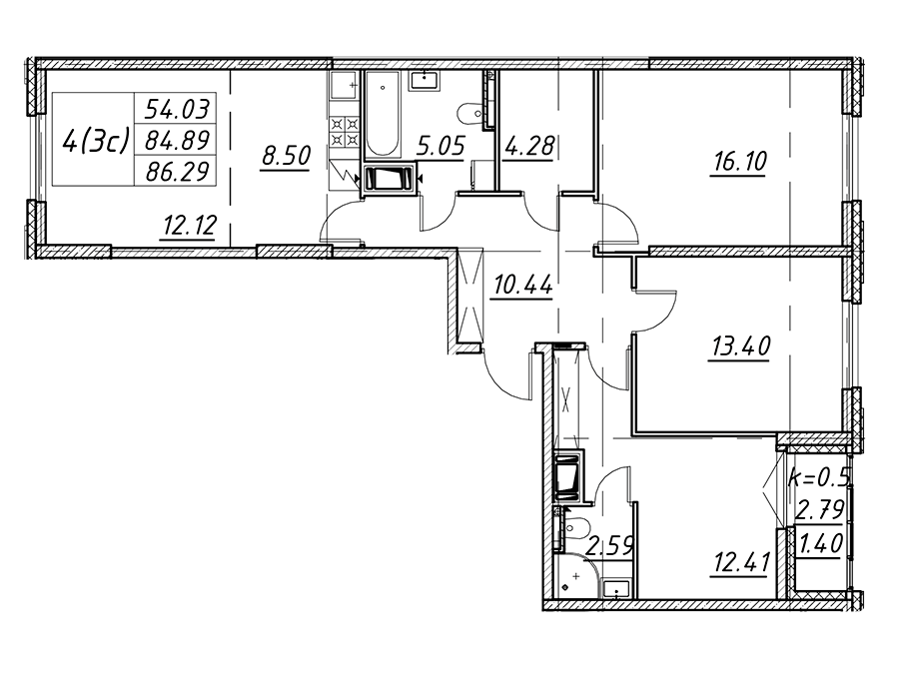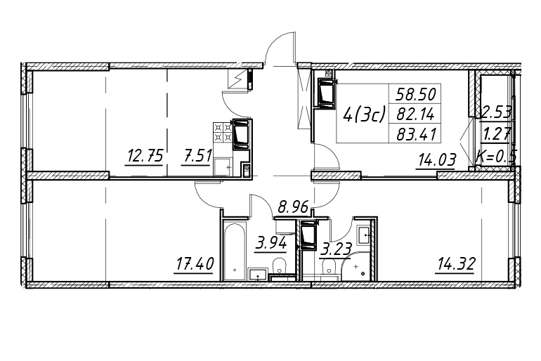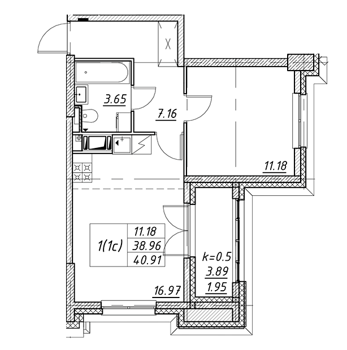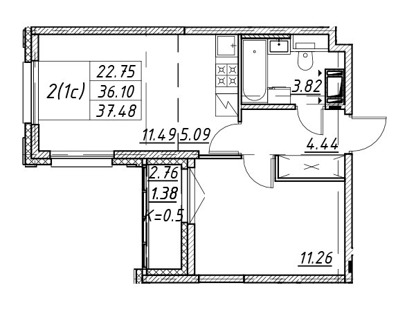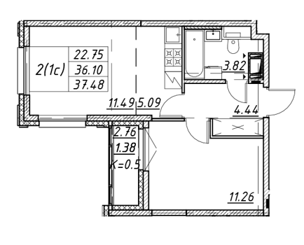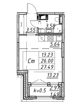 Площадь от 35.4 м2