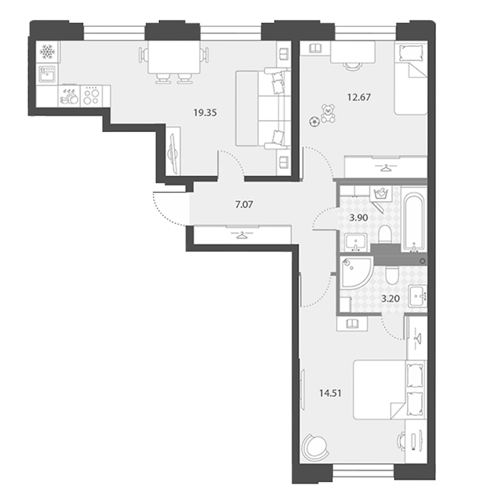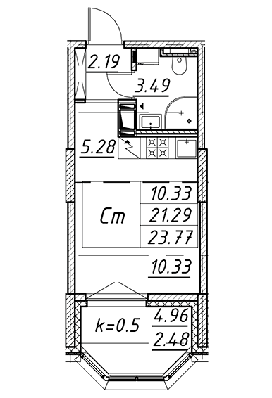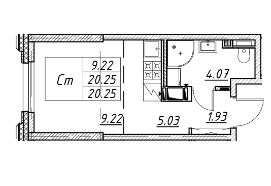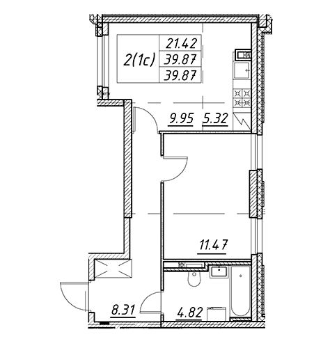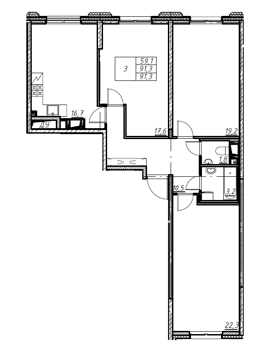 Площадь от 19.9 м2