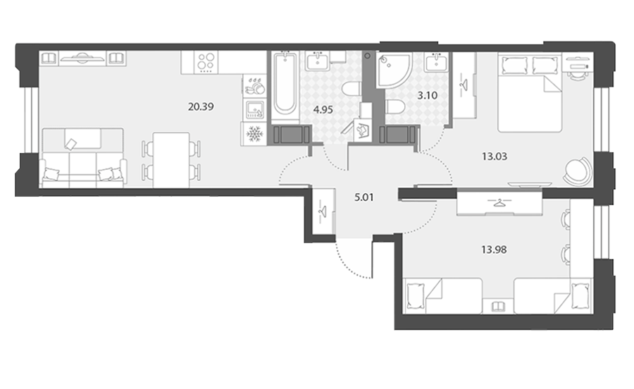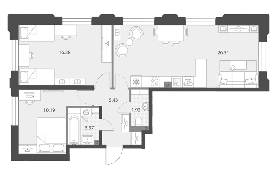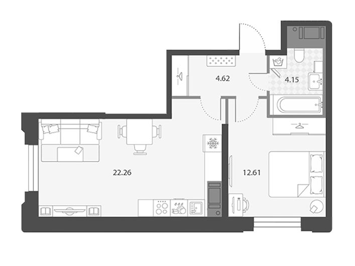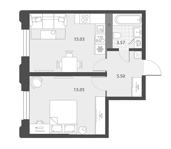 Это приватность, доступная даже в однокомнатных квартирах. Отдельная ванная и гардероб обеспечивают удобство, делая ваш отдых максимально комфортным. Роскошное решение для тех, кто ценит личное пространство, что особенно актуально для семей с детьми