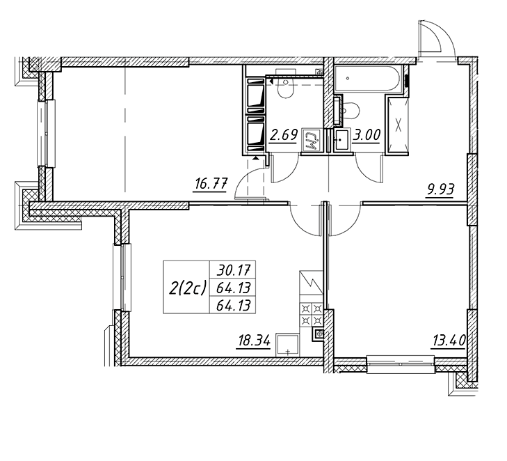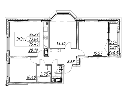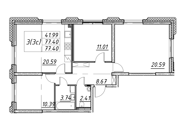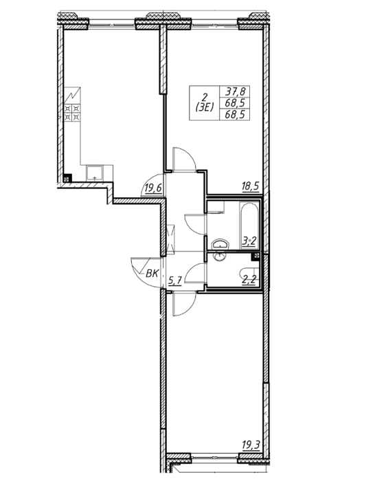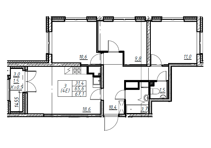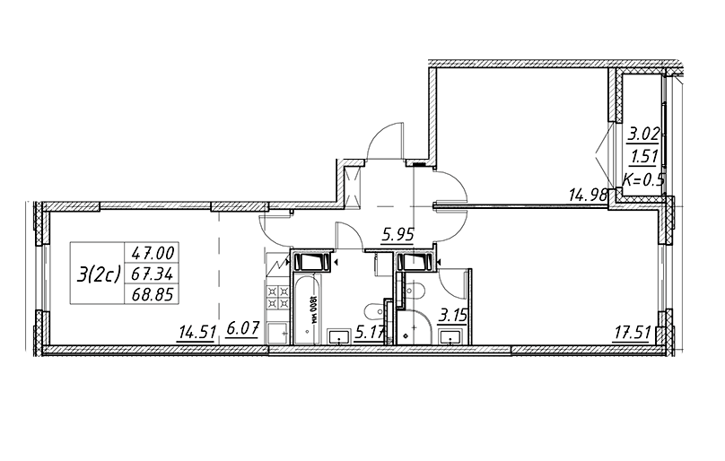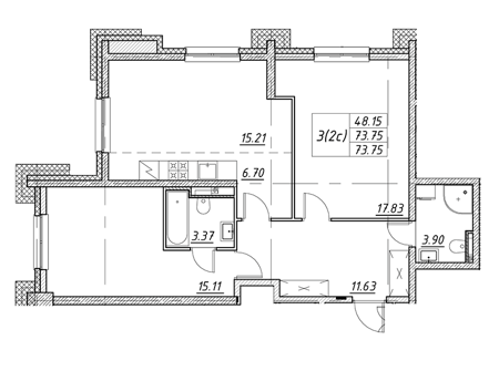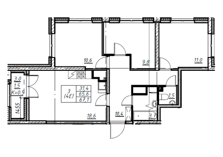 Площадь от 67.4 м2