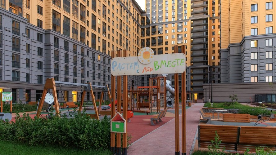 Одновременно с возведением нового квартала построено 4 детских сада и 2 школы, которые уже принимают юных жителей ЖК.