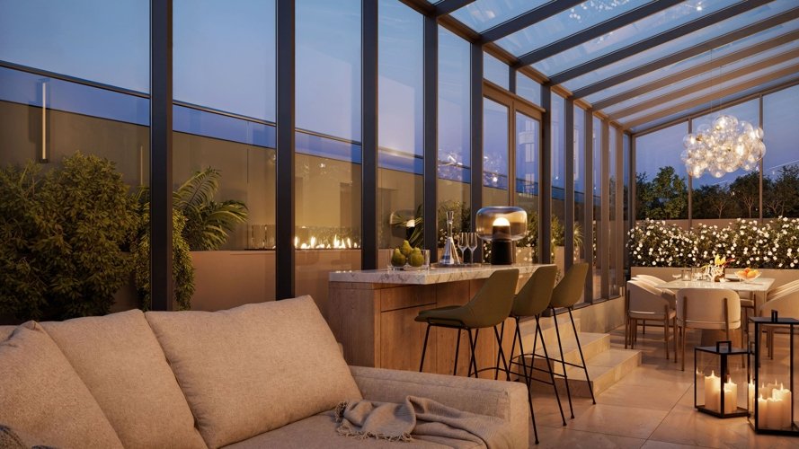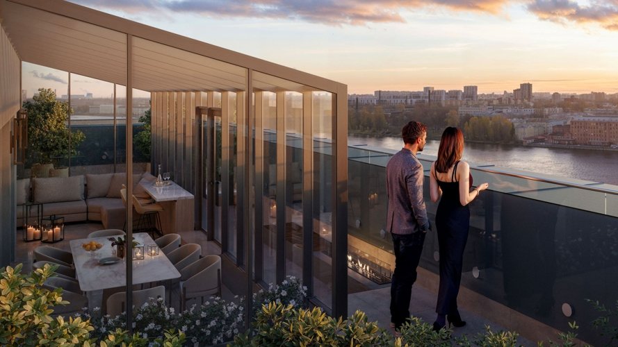 В продаже представлены студии, одно- и многокомнатные квартиры с уникальными решениями. Основные из них – собственная терраса, эркер, просторная гостиная с камином.
