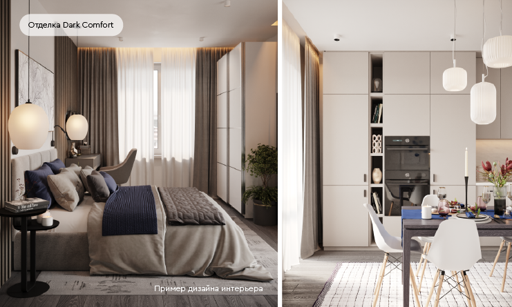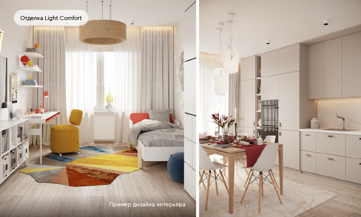Можно приобрести квартиру как без отделки, так с подчистовой и чистовой отделкой 2 видов - посветлее и потемнее.