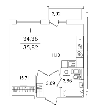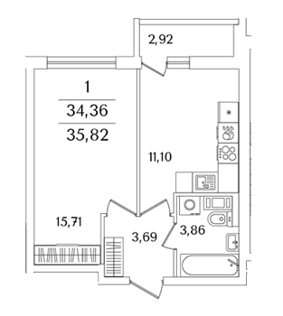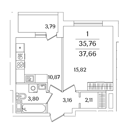 Площадь от 35.1 м2