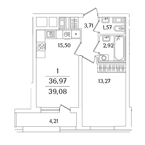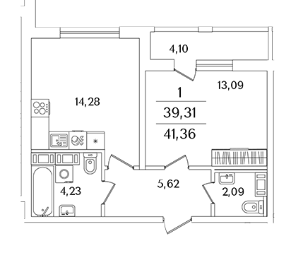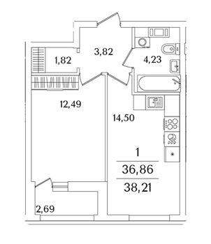 Площадь от 38.2 м2