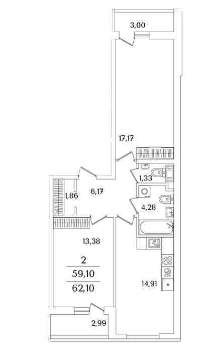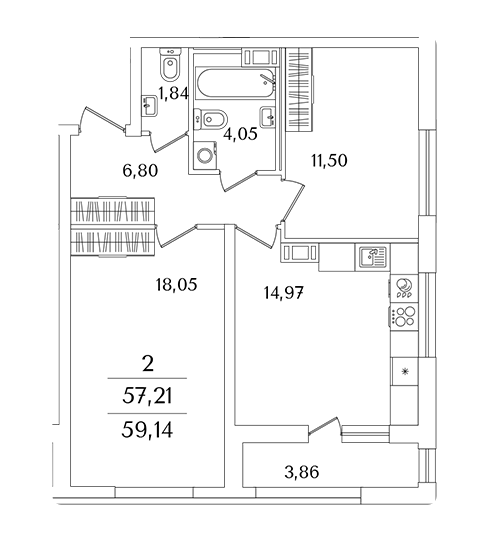 Площадь от 59.1 м2