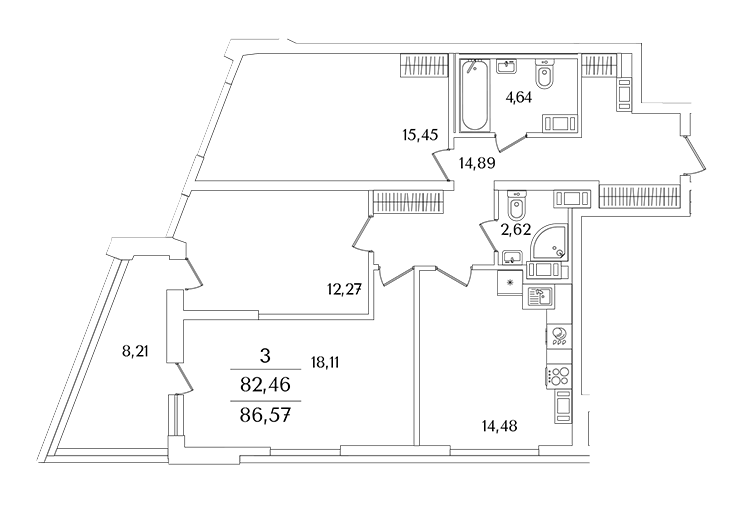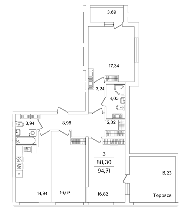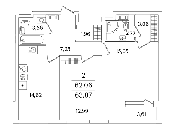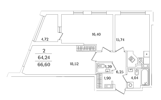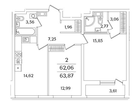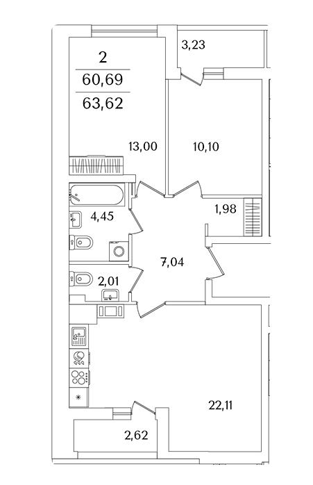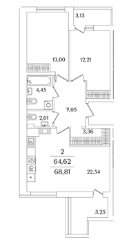 Площадь от 63.6 м2