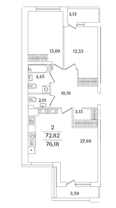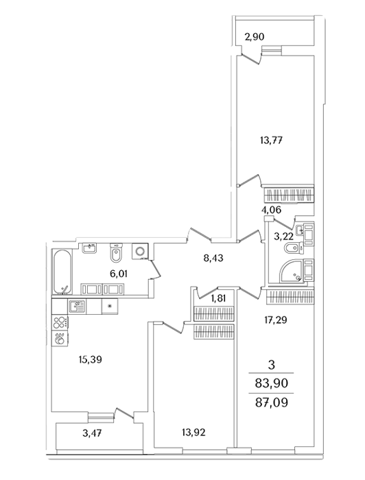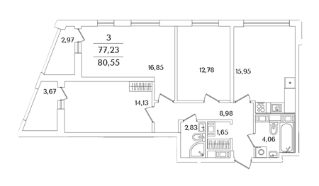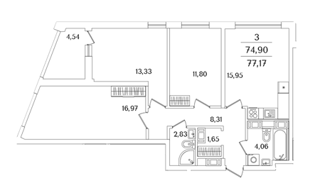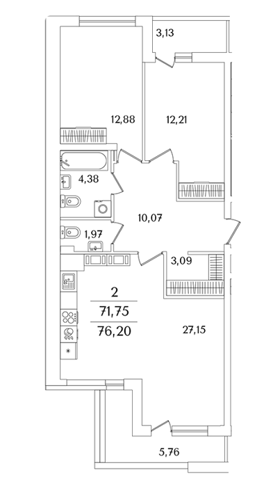 Площадь от 75.8 м2