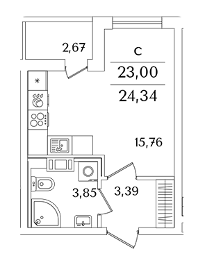 Площадь от 23.9 м2
